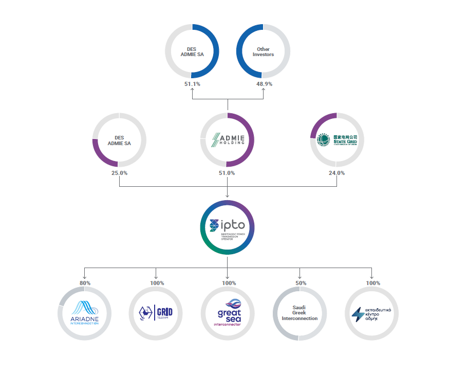 ADMIE (IPTO) Holding holds a 51% stake in the Independent Power Transmission Operator S.A. (IPTO or ADMIE). The purpose of ADMIE (IPTO) Holding is to promote the work and activity of Affiliate company ,IPTO SA to shareholders and the investment community.